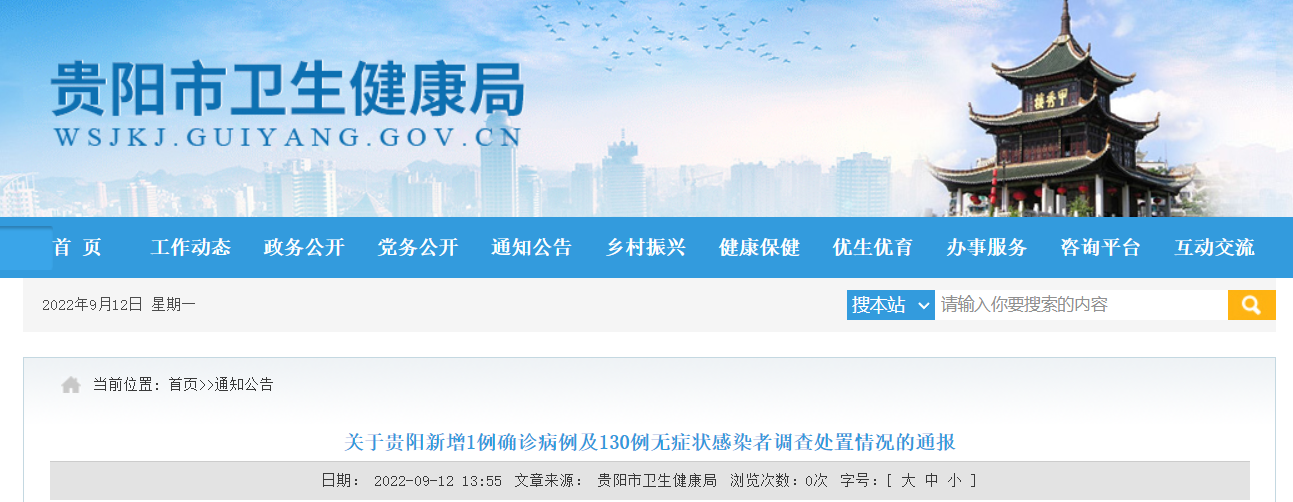 9月11日0时至24时,经复核确诊,贵阳市累计新增131例阳性病例,1例诊断为新冠肺炎确诊病例,130例诊断为新冠肺炎无症状感染者。