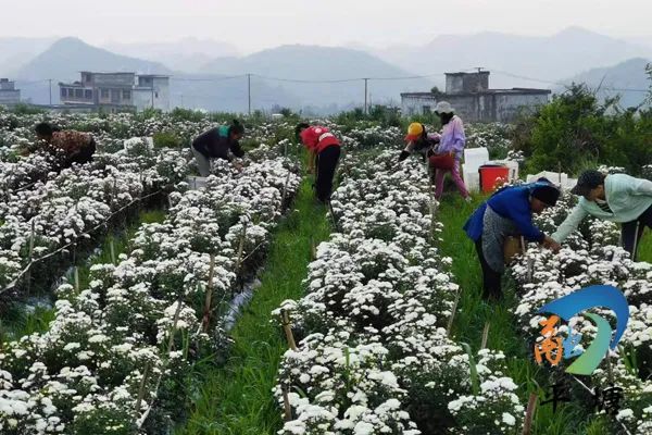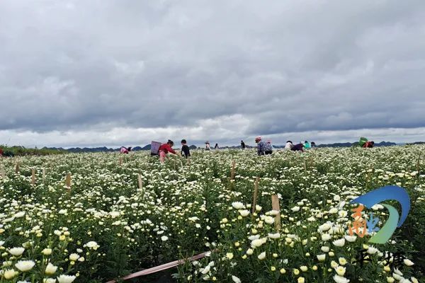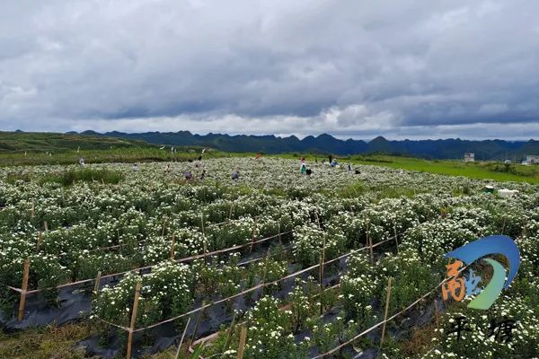 日前,平塘县大塘镇团部口的七月菊进入采摘季,当地群众忙着摘花、搬运、装箱,与怒放的菊花形成了夏日最靓丽的风景。