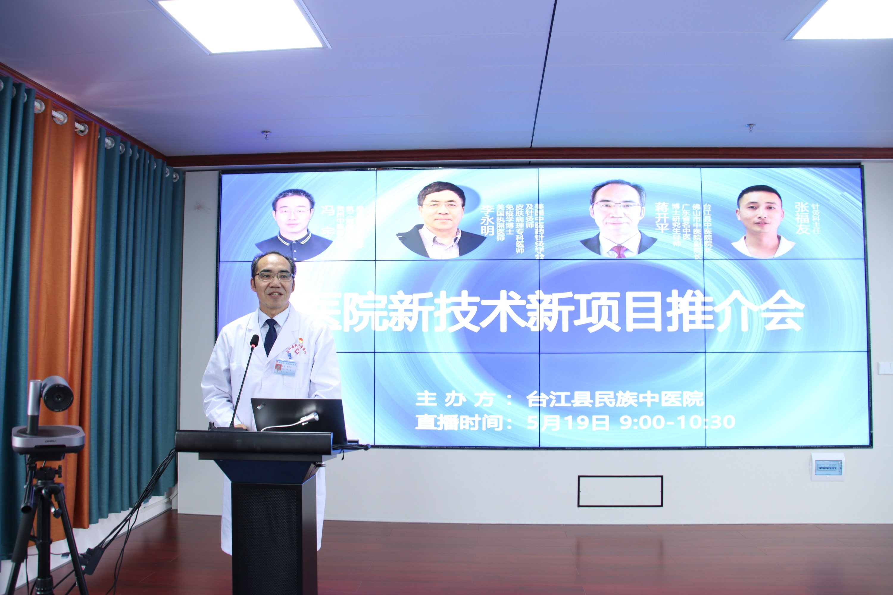 5月19日,台江县民族中医院四楼会议室座无虚席,由该院联合美国中医药针灸学会李永明博士共同举办的“线上+线下”新技术新项目推介会正在举行。