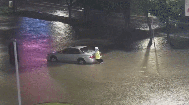 龙城中队铁骑队员马云丽在滂沱雨夜