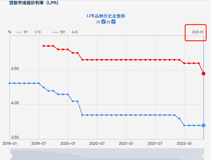 刚刚,2022年5月20日全国银行间同业拆借中心受权公布贷款市场报价利率(LPR)公告出炉:1年期LPR为3.7%,较上一期未变化;5年期以上LPR为4.45%,较上月下降15个基点。值得注意的是,这是5年期以上LPR继今年1月后再次下调。