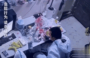 8月15日晚,新疆库尔勒一男子在吃泡面时,桌面上的物品被弹飞。