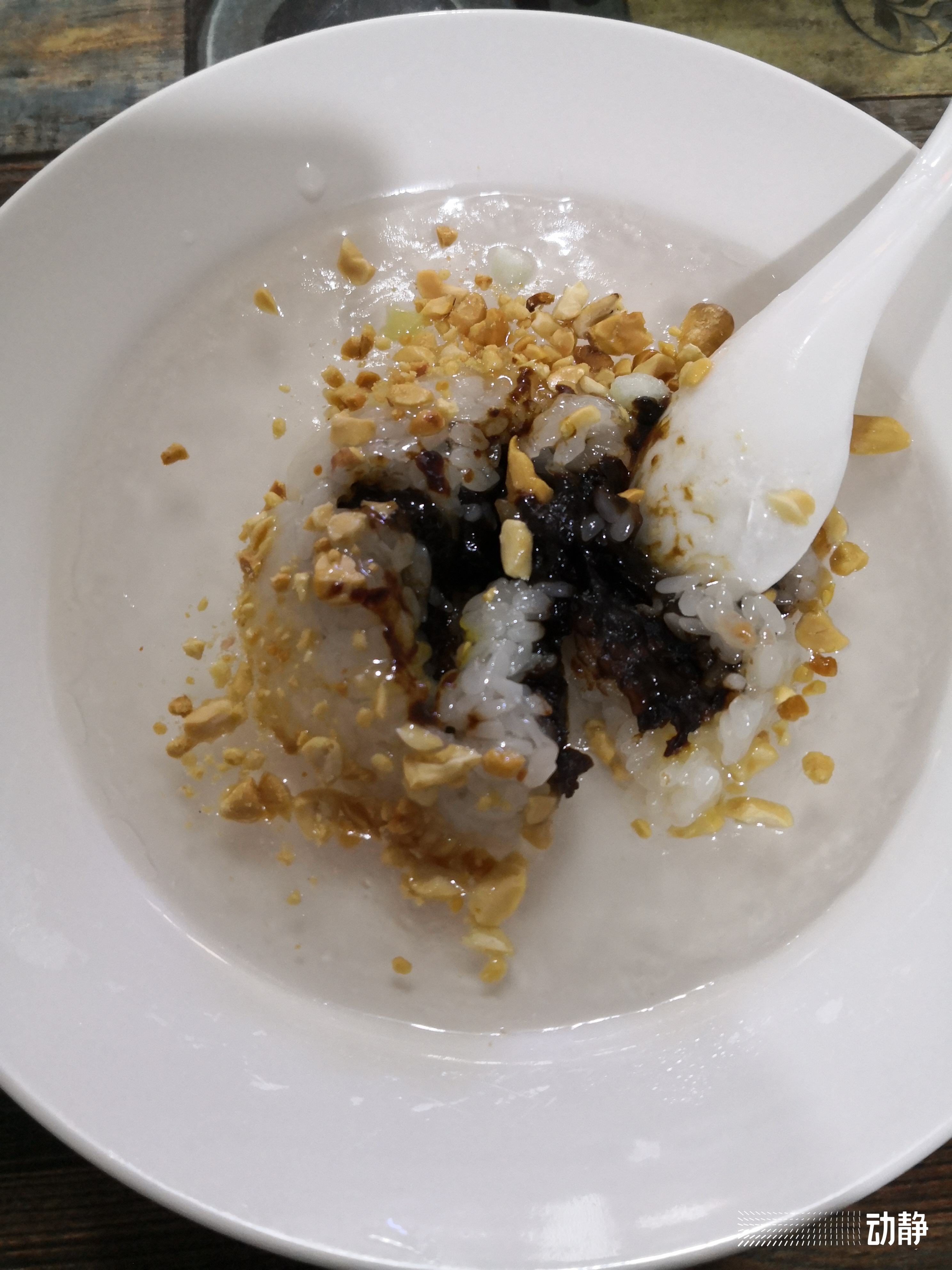 我选了后者,特意交代老板多加一勺红糖,安顺甜品的妙处是材料好,没有乱七八糟的添加物,八宝饭里有洗沙,再加上一些葵花、花生碎之类,本色本味,吃到连盘子底都刮得干干净净。同行的朋友们还买了五十个打包带走,光冲这一条,就能想象得到能有多好吃。