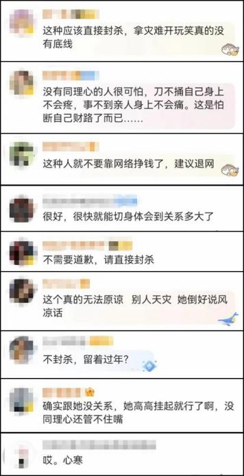 近日,拥有300多万粉丝的女网红“董事轩”在直播时称,“甘肃地震离我这儿800公里远,跟我有什么关系吗”。因为她说话时面带笑意,女网红的言行引发不少争议。不少网友在其评论区留言:“这种应该直接封杀,拿灾难开玩笑真的没有底线”“这个真的无法原谅,别人天灾,她倒好说风凉话”。