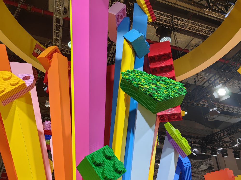第六届进博会乐高展台上,10万块乐高积木颗粒搭建而成的大型3D乐高积木模型“玩乐之心”。新华社记者周蕊 摄