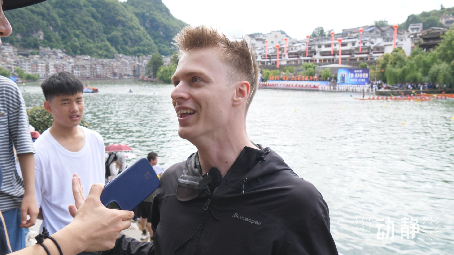 来自贵阳的游客张光媚也是第一次看划龙舟,“能够在一条河上看到两种比赛,非常精彩和震撼,感觉自己没有白来”。