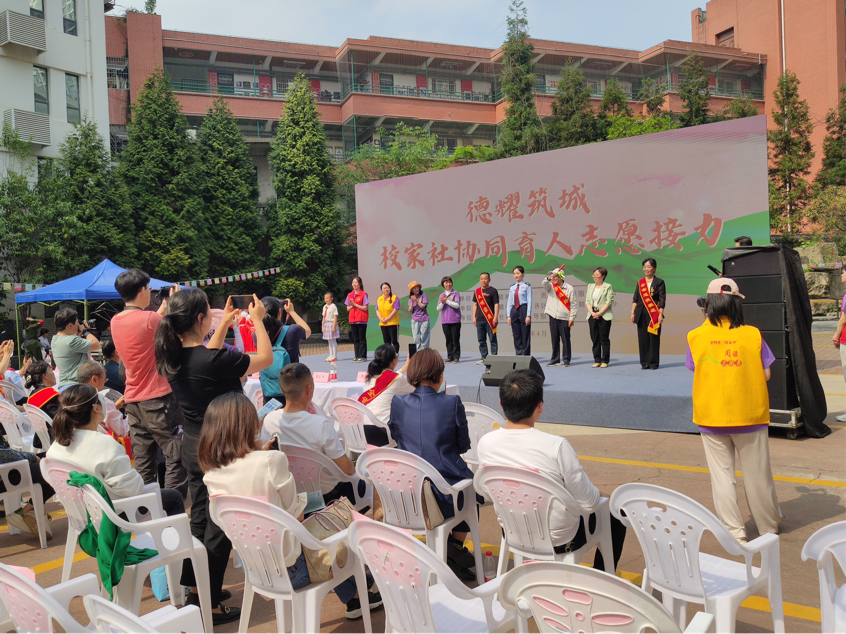 活动现场举行了“德耀筑城 文明接力”仪式。与会来宾,道德模范、志愿者代表,少年儿童以传递“绿丝带”接力棒的方式接力,象征优秀品德、志愿精神薪火相传。活动中邀请道德模范与志愿者们在现场交流心得,并由少先队员为先进代表献上鲜花。