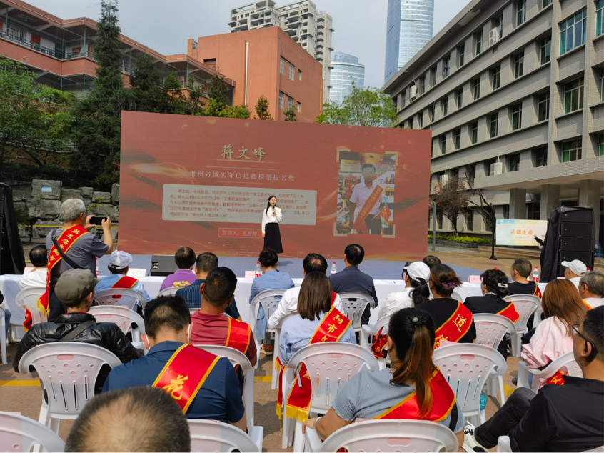 省、市相关单位负责人,贵州开放大学师生代表,贵阳贵安道德模范、身边好人、文明家庭等典型代表,各区(市、县)党委宣传部和开发区相关负责人,云岩区街道群众、学生及家长,新时代文明实践志愿者等200余人参与本次活动,在现场聆听榜样故事,感受道德力量。
