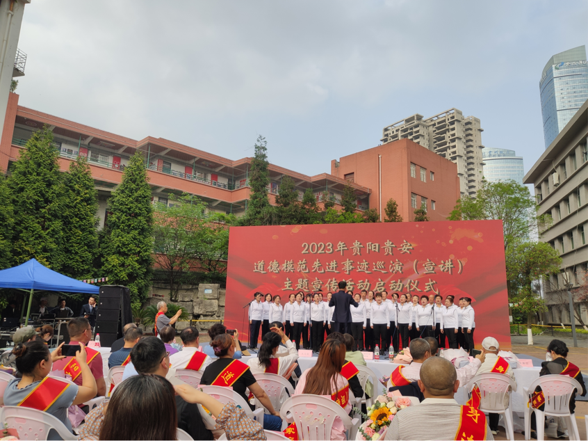 为进一步学习宣传道德模范先进事迹,推动形成尊重模范、学习模范、争当模范的良好氛围,4月21日,中共贵阳市委宣传部、贵阳市精神文明办在贵州开放大学(八鸽岩校区)组织开展2023年贵阳贵安道德模范事迹巡演宣讲主题活动启动仪式和首场示范活动。