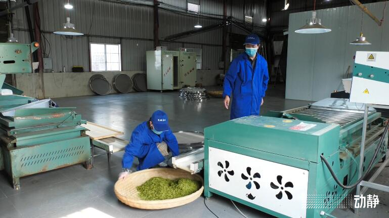 山上忙采摘,山下忙制茶。在德江县复兴镇艺琼生态茶业有限公司加工车间内,制茶工人正熟练地制作春茶,采摘好的茶叶经过筛选、杀青、干燥等工序,浓郁、醇厚的茶香飘散在工厂内。