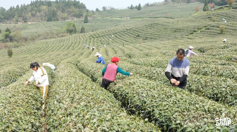 在德江县合兴镇朝阳村的3000多亩茶园里,茶农们挎着茶篓在茶垄里穿行,一颗颗嫩绿的翠芽被茶农娴熟摘下,飞快放入竹篓,一派繁忙景象。
