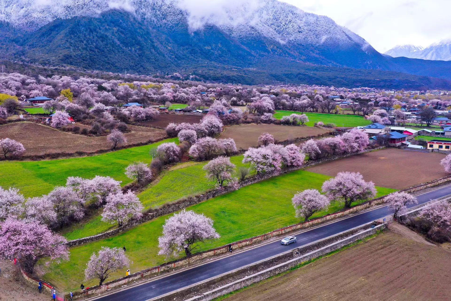 西藏自治区林芝市波密县桃花沟吸引了来自各地游客前来观光游览,车辆行人徜徉花海,景色美不胜收。每年三月到四月,都是波密县桃花盛放的季节。根据海拔不同,波密桃花绽放的季节从三月中旬一直延伸到四月中旬。