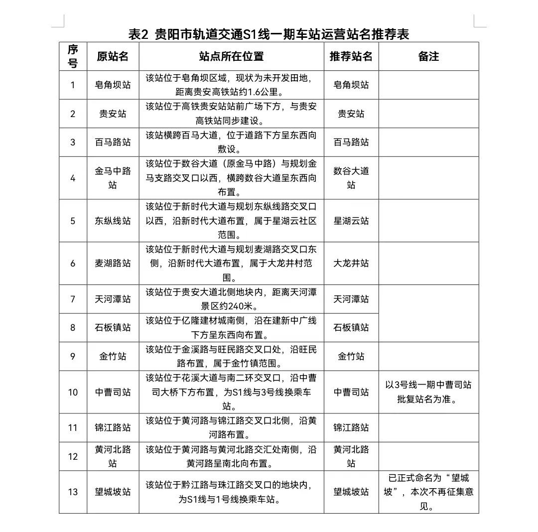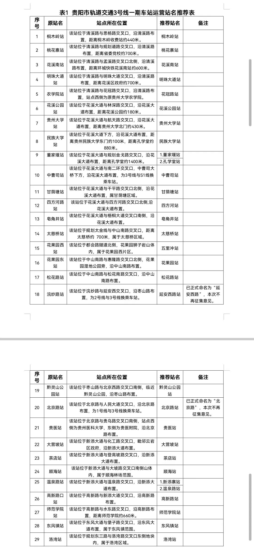 2月20日,贵阳市交通委员会发布《关于征求贵阳市轨道交通3号线一期、S1线一期车站站点名称意见的公告》,贵阳市民在2月24日前,可以通过指定邮箱、电话和扫码方式,提出对3号线、S1线车站站名的建议。