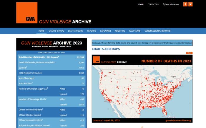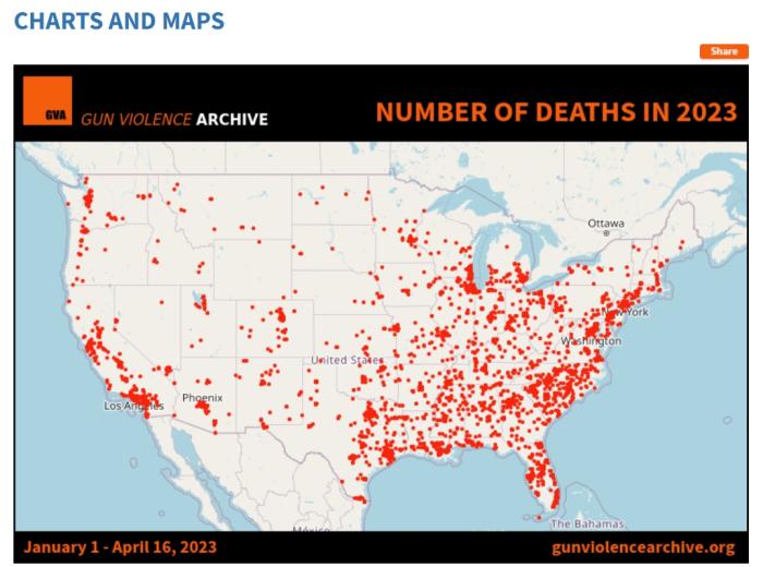 美国“枪支暴力档案”网站4月17日公布的最新数据显示,2023年至今,美国共发生至少162起大规模枪击事件,因各类涉枪事件死亡的人数高达12354人,另有9596人受伤。