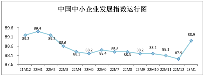 中国中小企业协会今天(15日)发布,1月份,中国中小企业发展指数(SMEDI)为88.9,比上月回升1个点,扭转了去年初以来持续震荡下行态势,上升幅度达到近两年来最高。其中,分项指数和分行业指数均全面回升。