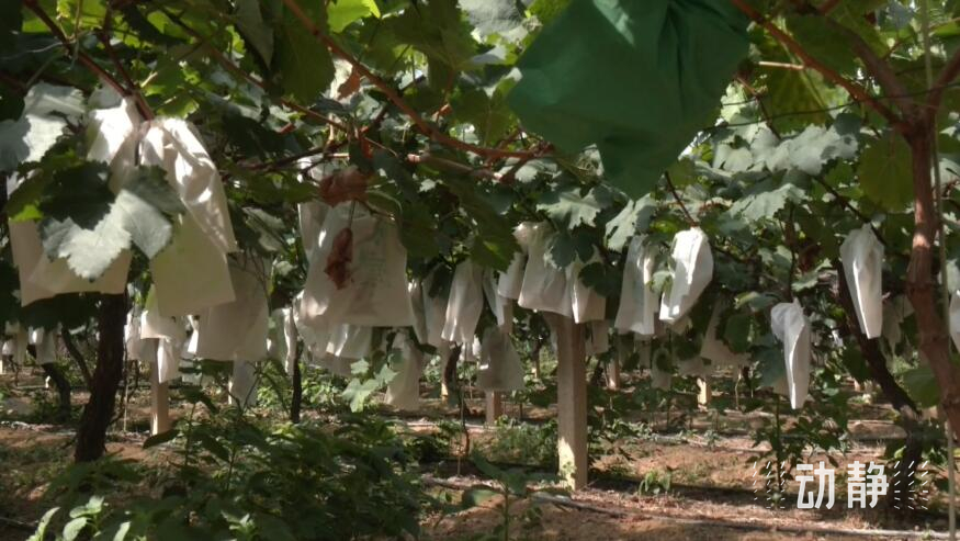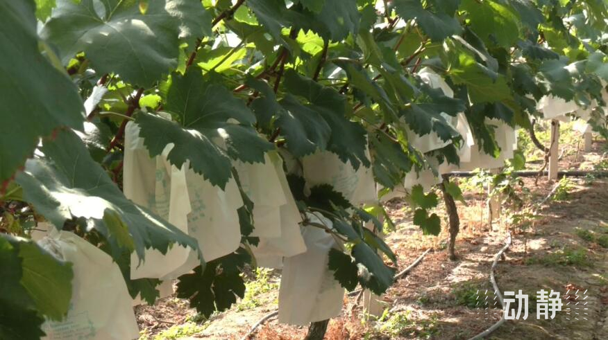为保障葡萄的品质,基地给每串葡萄都套上了袋子,能有效抵御病虫害,还能改善葡萄的外观品质,使果面更加光滑,香气更加浓郁,促进果实的均衡成熟。
