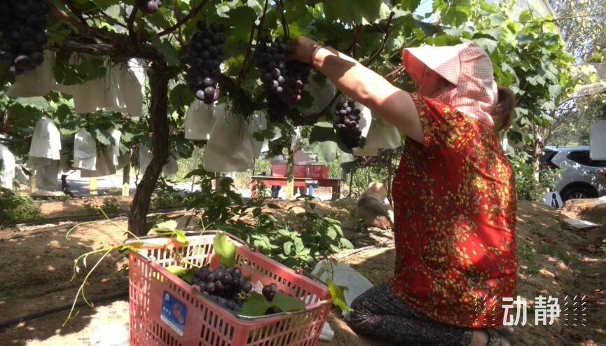 据了解,该基地面积30亩,自2017年栽种葡萄以来,今年已是第五年迎来丰收,有夏黑葡萄和阳光玫瑰葡萄两个品种,目前正是夏黑葡萄的采摘期。
