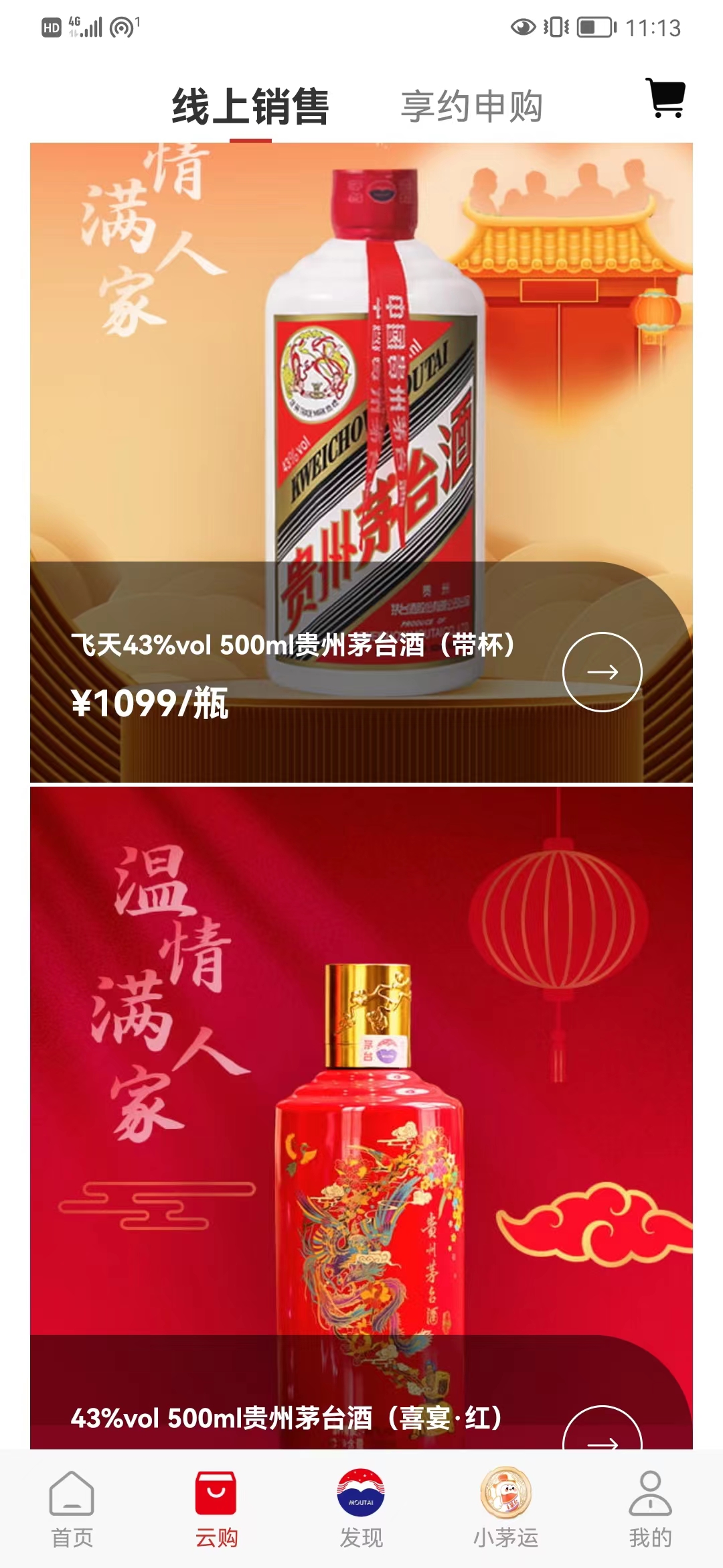 加上试运行阶段的“一岁一生肖”的虎年茅台(2款)、“珍酿之品·百福具臻”的珍品茅台和“与喜事相逢”的茅台1935,9款产品组成i茅台正式上线的产品阵营,价格在208元到4599元,让广大消费者有更多的产品选择。