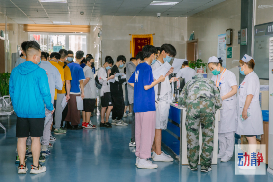 六月,贵州省2022年下半年征兵工作全面启动。花溪大学城的194名毕业生应征青年集中来到贵阳市花溪区人民医院参加征兵体检。