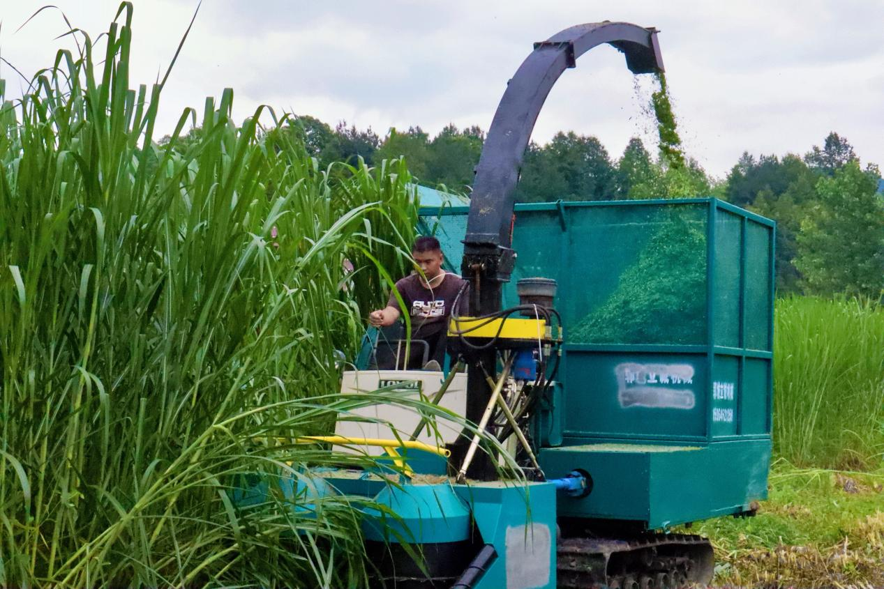 近日,走进松桃苗族自治县大路镇大路村金银草种植基地,四五米高的金银草长势喜人,郁郁葱葱。基地里,村民驾驶着收割机来回穿梭,10余名村民忙着铲草、打包、捆绑……一派喜人之景。