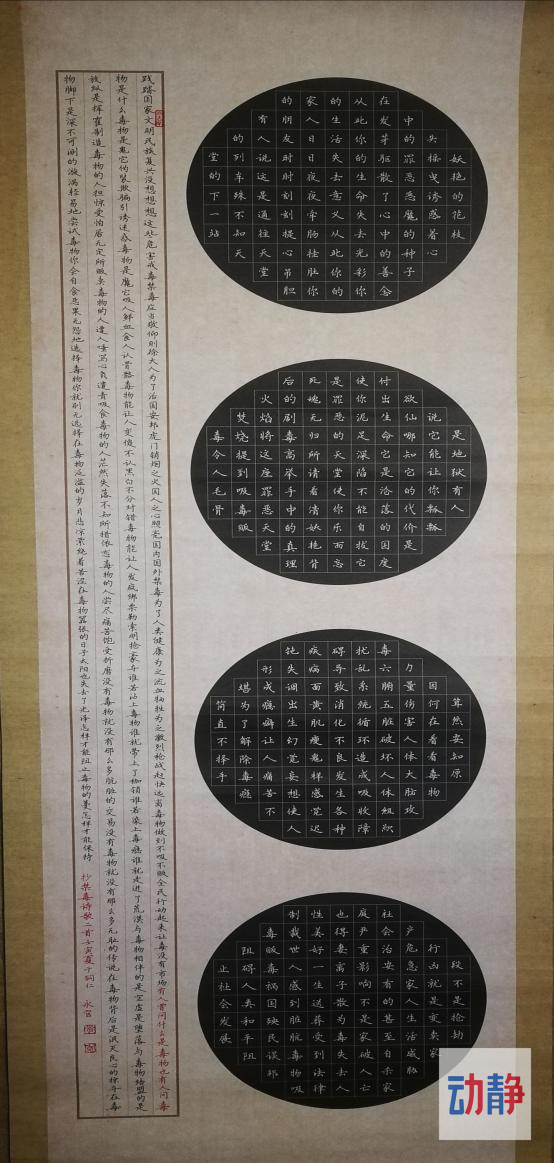 书法活动结束后,针对青少年好奇心强、抵抗能力较弱、容易受到毒品侵害的特点,工作人员分别就如何识别新型毒品、如何预防青少年吸食毒品等,为同学们发放禁毒宣传手册,结合《中华人民共和国禁毒法》《贵州省禁毒条例》给同学们上了一堂生动的禁毒宣传课。结合真实案例,从毒品的定义、种类、吸毒、染毒原因出发,呼吁同学们要谨慎交友,提高毒品防范意识。