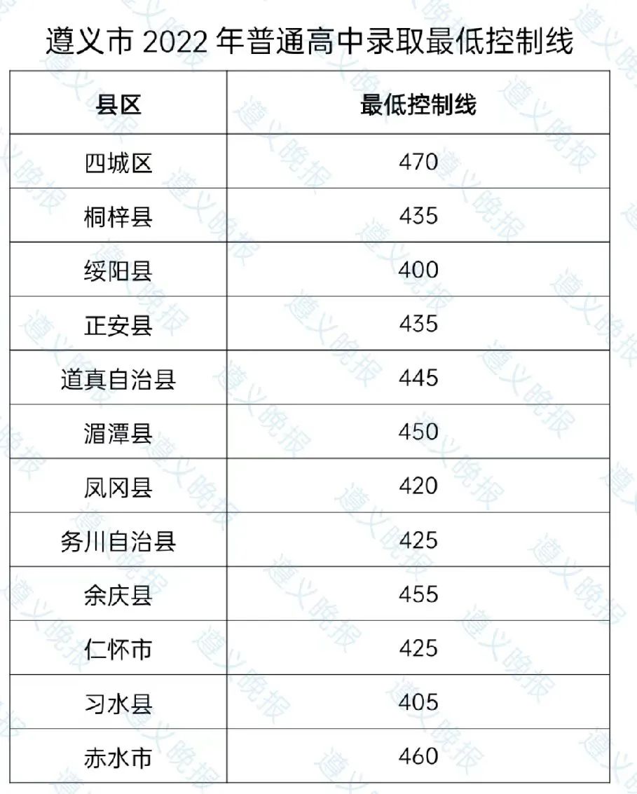 2022年普通高中录取最低控制线