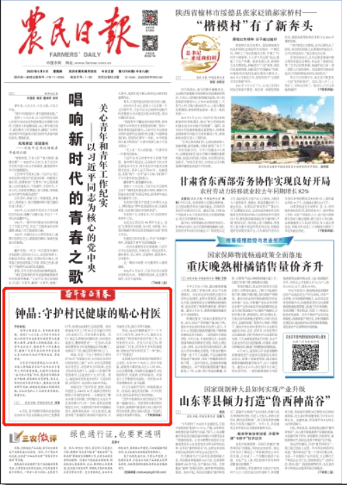 4月底,贵州省黔西南布依族苗族自治州贞丰县龙场镇龙河村已是暮春时节,结荚的油菜籽已近收获期。村医钟晶每天早上7时20分左右就打开村卫生室的大门,开始为群众看病。同时,她还在看病的间歇时段,给村里的高血压、糖尿病患者一一打电话,告知他们需要来卫生室测量血压和血糖了,如果来不了的,她还要安排时间上门。