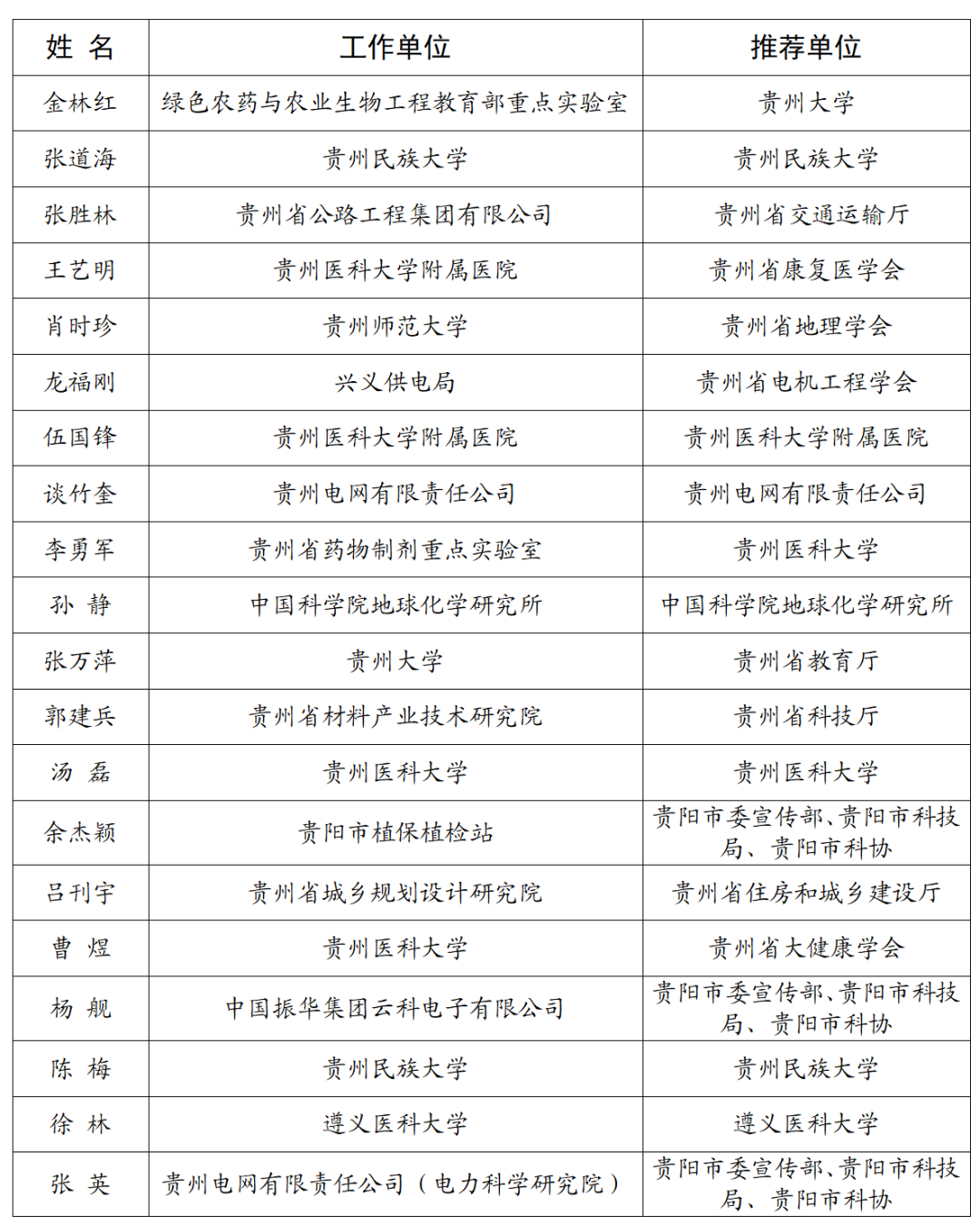 为大力弘扬科学家精神,激发科技工作者的荣誉感、自豪感、责任感,按照省委宣传部、省科协、省科技厅、省国防科工办、贵州科学院、中科院地化所《关于开展2022年贵州省“最美科技工作者”学习宣传活动的通知》(黔科协宣发〔2022〕26号)要求,经广泛发动、层层推荐、资格审核、专家遴选等程序,产生了20名2022年贵州省“最美科技工作者”宣传人选。