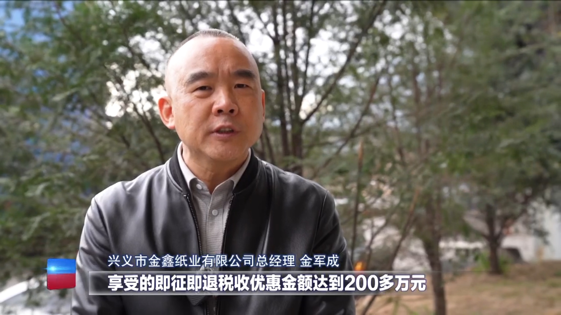 兴义市金鑫纸业有限公司总经理金军成介绍,2023公司纳税额是500多万元,享受的即征即退税收优惠金额达到200多万元,对人员工资、大型设备采购、研发费用都有极大的帮助。