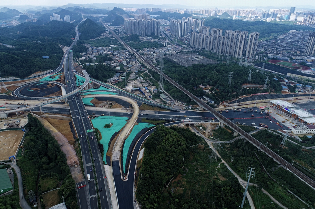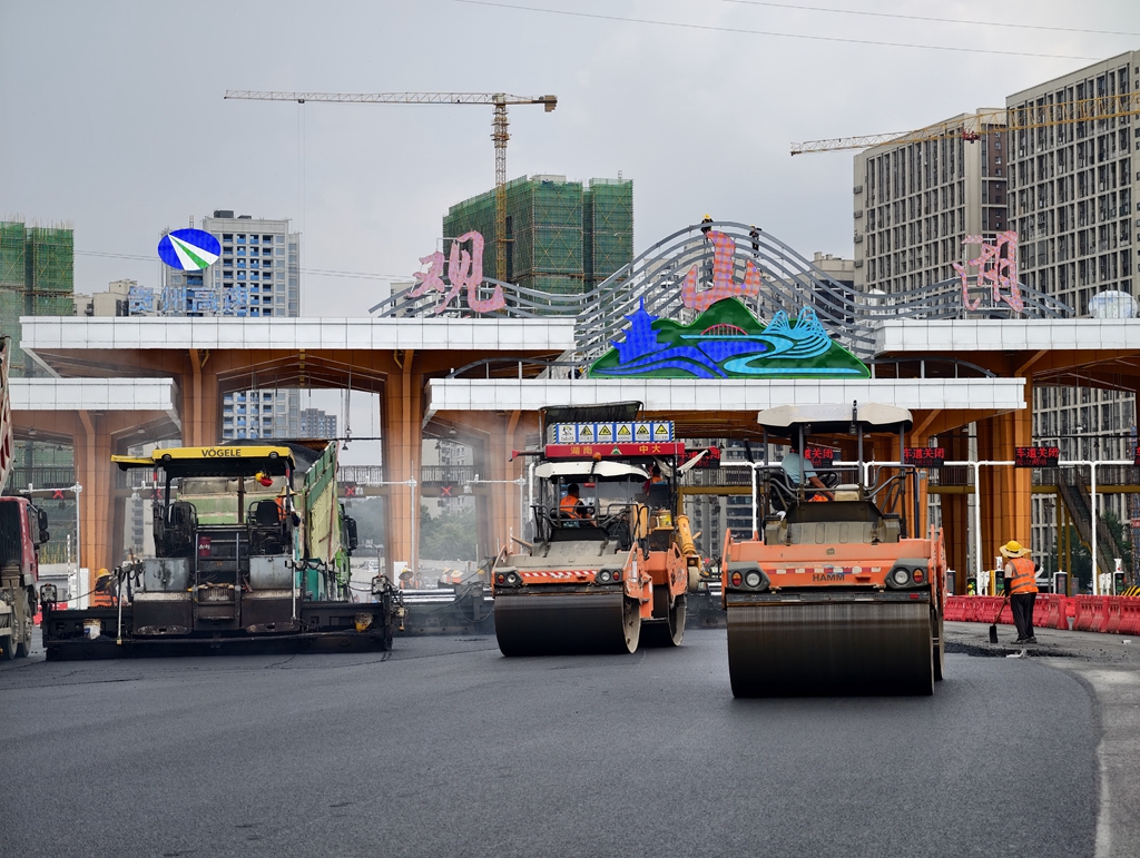 来自贵州高速集团消息,7月31日,沪昆国家高速公路贵阳至安顺段扩容项目(以下简称“贵安扩容项目”)15标观山湖枢纽路面摊铺顺利完成。