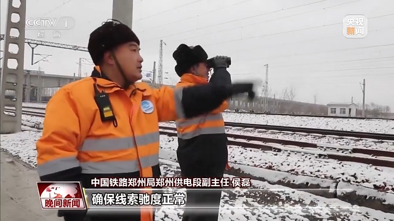 中国铁路郑州局郑州供电段副主任 侯磊:气温骤降会对接触网线索张力造成影响,我们加大重点设备的检查力度,确保线索弛度适当,保证供电设备安全。
