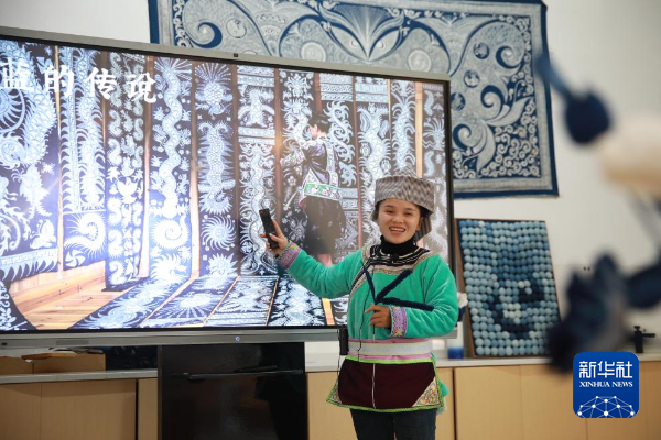 “‘村超’爆火之后,榕江民间足球赛事便成为我们破圈的法宝。村民们在赛场上的非遗展演,也让世界看到了榕江蓝染,通过贵州深山绣娘和国内外设计师合作交流碰撞、创新设计,让这项非遗技艺摇身一变,成为了时装新潮流。”罗芸介绍道。
