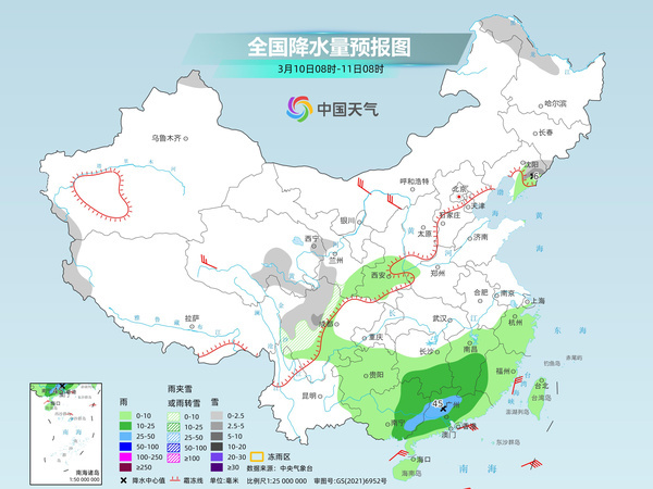 今明天(3月10日至11日),我国降水仍是南多北少,华南部分地区今天雨势较强,有大雨。13日起,南方新一轮阴雨天气又将上线,华南等地部分地区累积雨量大,需注意防范次生灾害。阴雨影响下,南方气温多波动,江南、华南冷暖转换迅速。而北方升温趋势维持,华北多地气温将连创今年来新高。