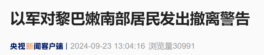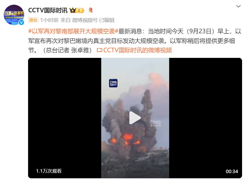 当地时间今天(9月23日)早上,以军宣布再次对黎巴嫩境内真主党目标发动大规模空袭。以军称稍后将提供更多细节。
