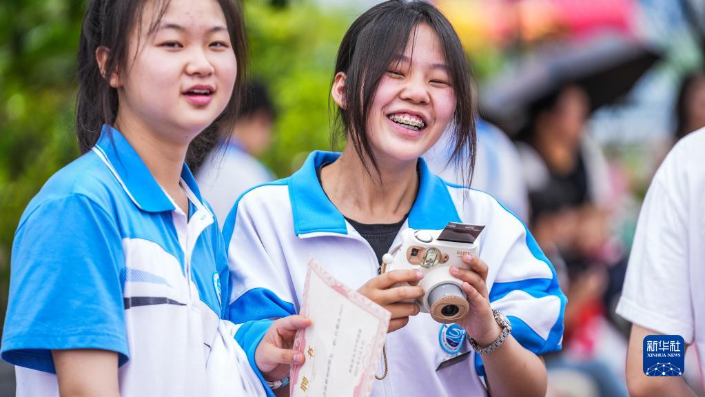 6月9日,乌当中学高三学生在校园广场给同学们拍照。新华社记者 陶亮 摄
