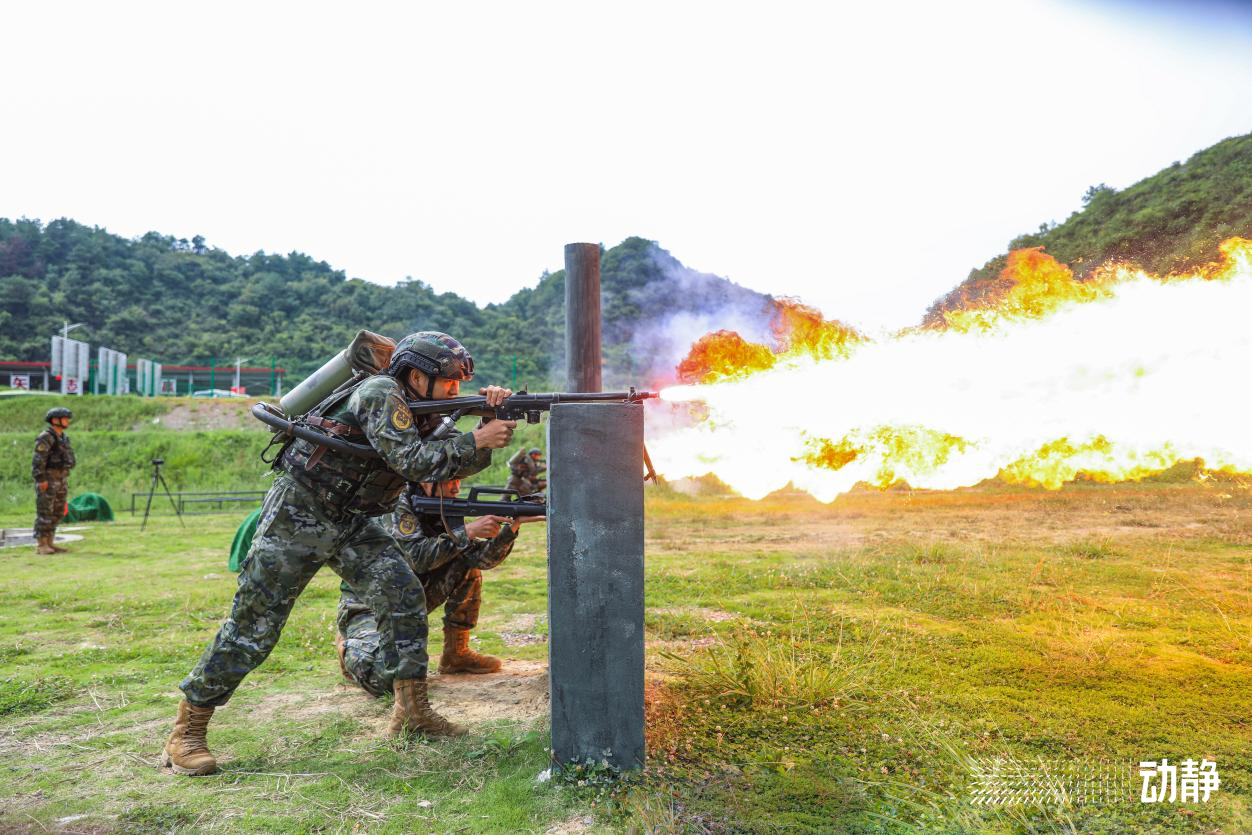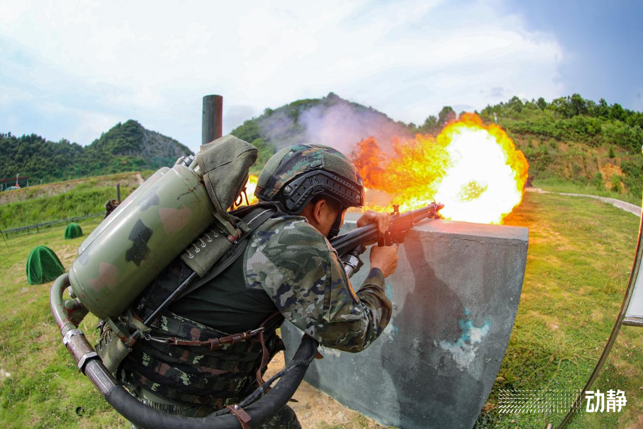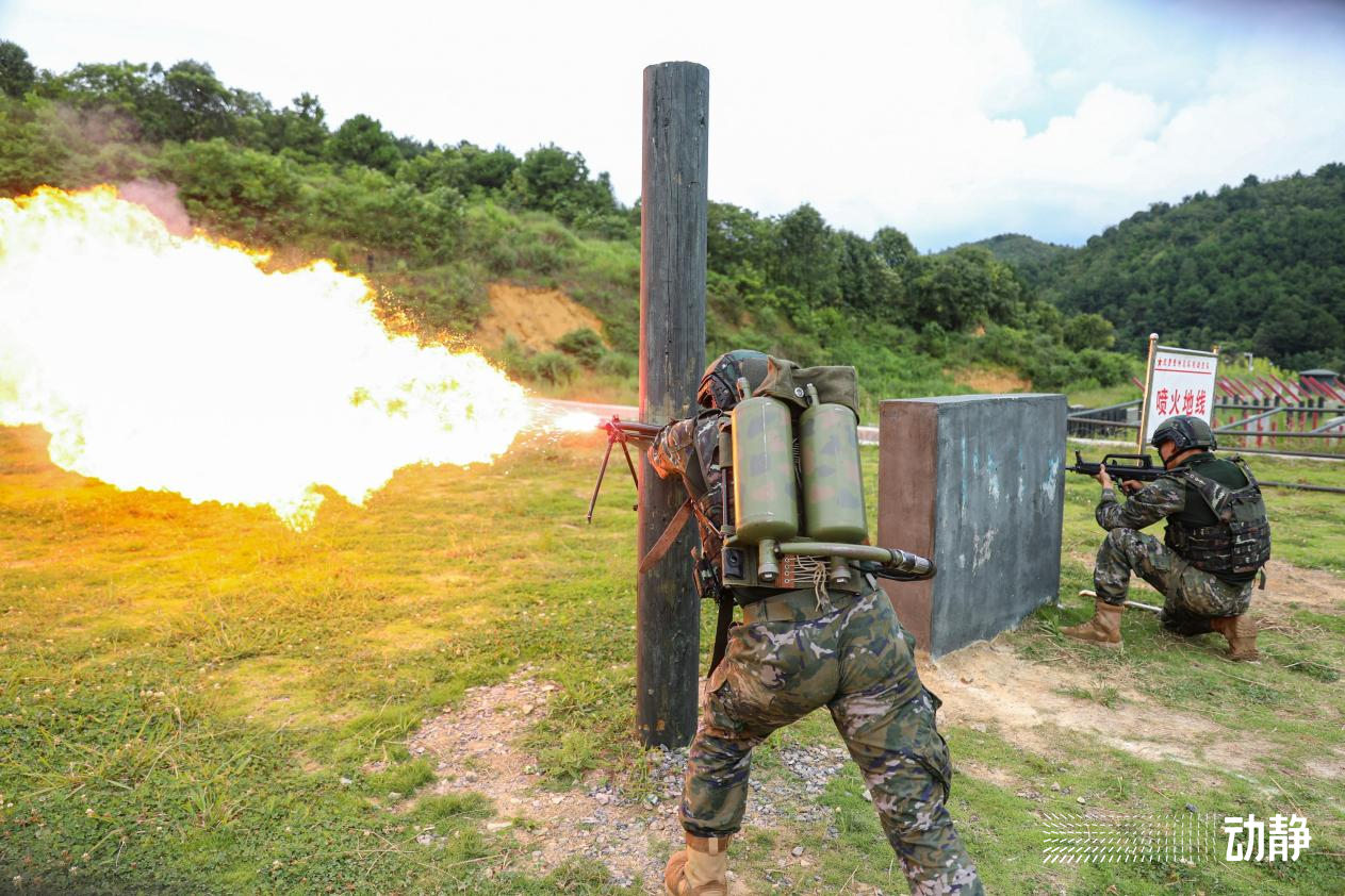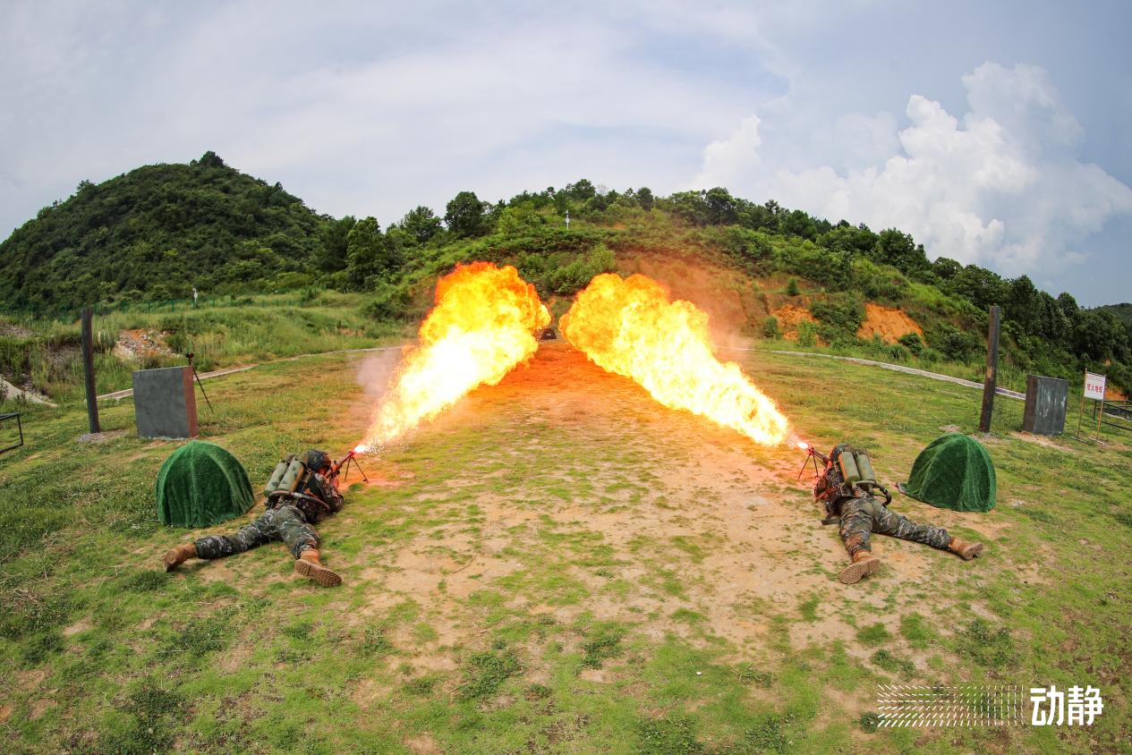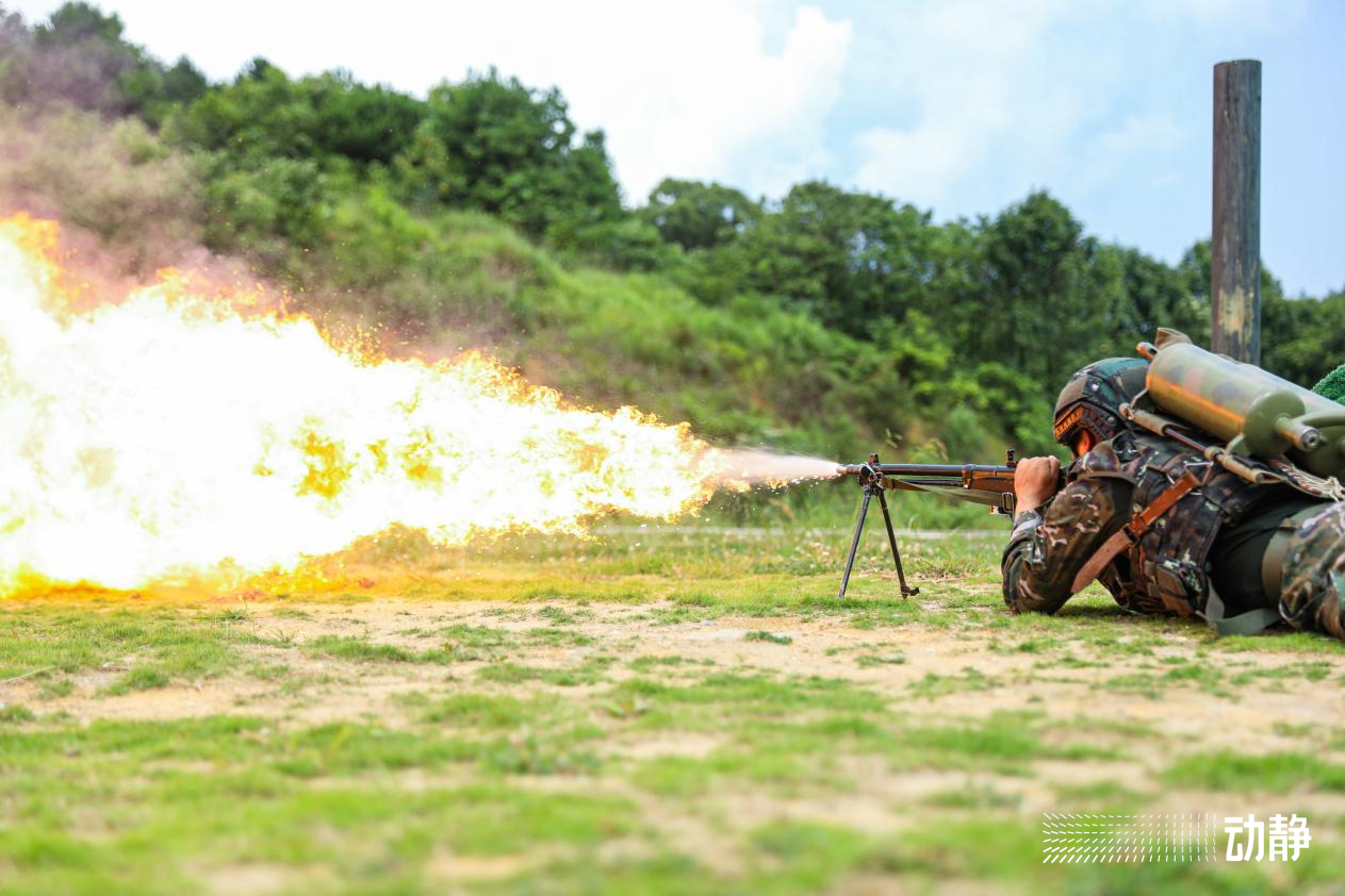 “对敌目标暗堡,喷火!”随着指挥员一声令下,喷火器手迅速卧倒、据枪、瞄准、击发,一条条“火龙”扑向目标,目标区域火光四射、热浪扑面,火力点瞬间变成一片火海。