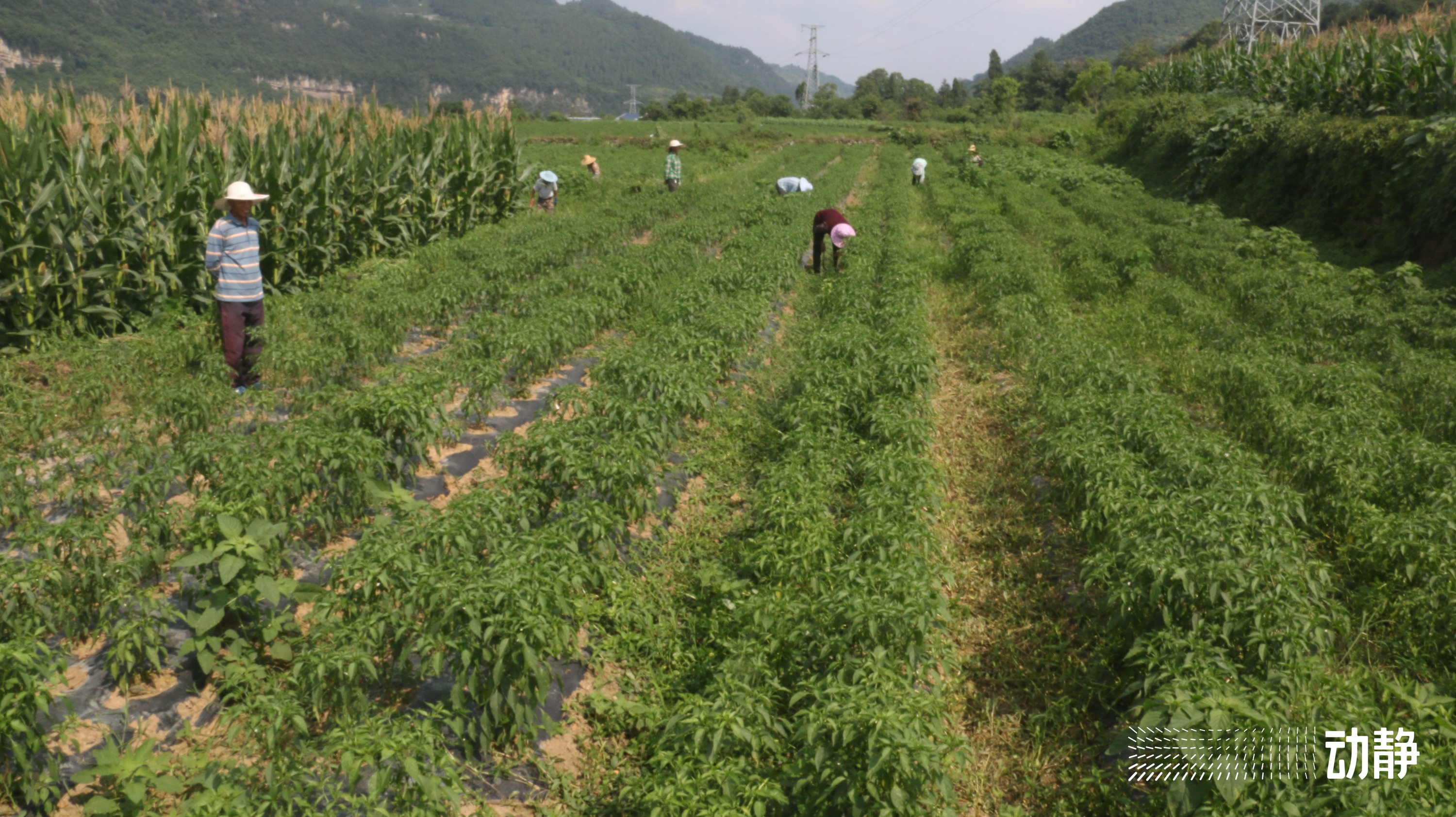 眼下,毕节市金沙县源村镇岩底村400余亩辣椒正在管护中,翠绿的线椒大大小小的挂满枝头,村民们正在田地里来回穿梭,熟练除草扶正,长势良好的喜悦弥漫村庄。