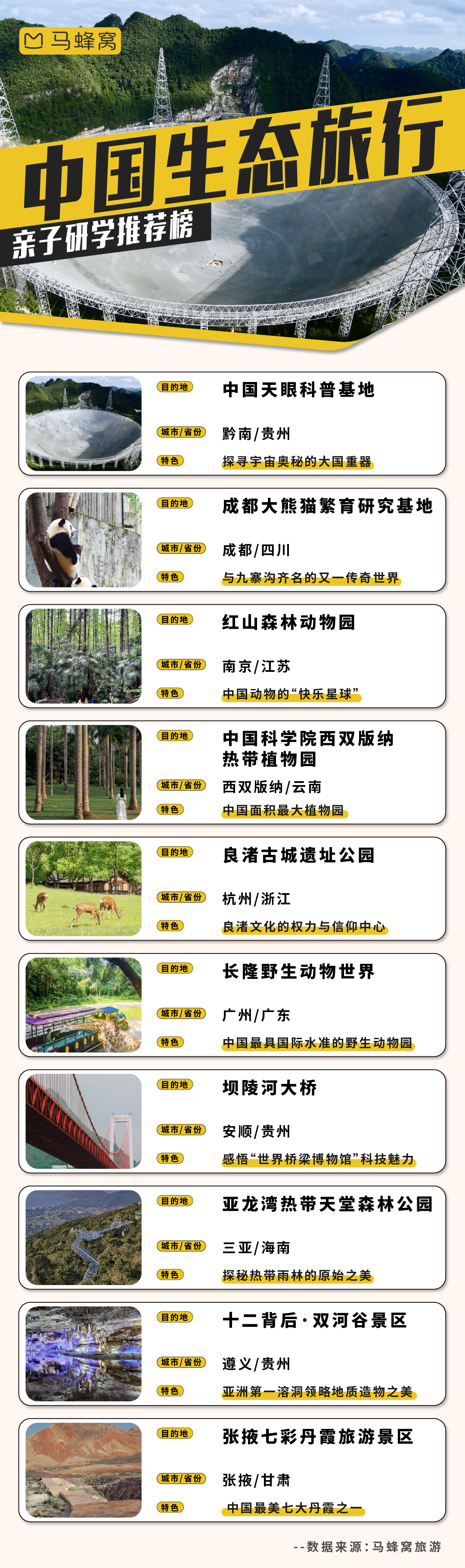 在亲子研学推荐榜中,贵州的中国天眼科普基地、坝陵河大桥、十二背后·双河谷景区上榜。