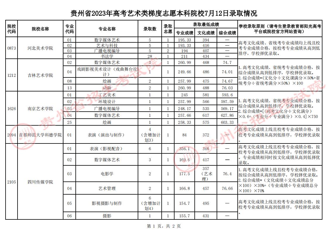 7月13日贵州省高考录取情况