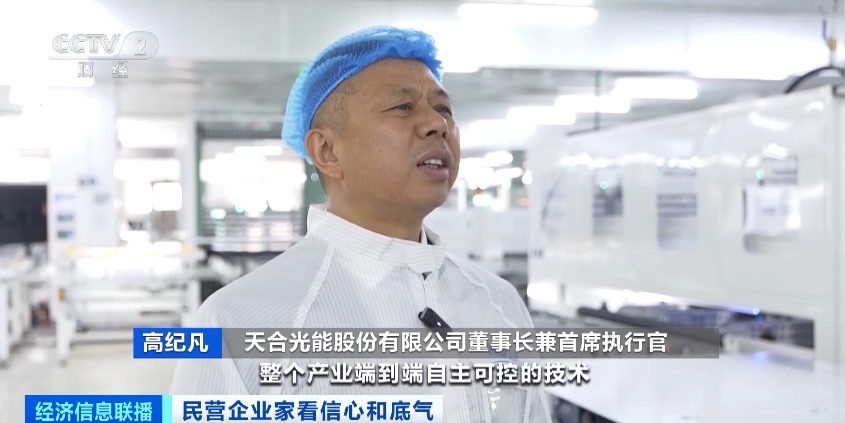 天合光能股份有限公司董事长兼首席执行官 高纪凡:(这是)我们参与建设、在西藏超过5000米的全球海拔最高的光伏电站。我们的电池技术、材料技术和组件技术,都走向更高效率、更大功率,更好地满足用户的需求。