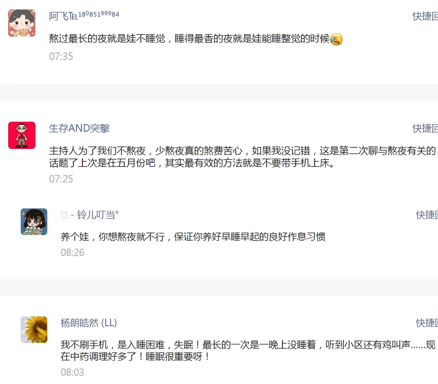 今天上班路上的朋友我们来解决两个问题:如何才能让自己停止熬夜,开始早睡早起?以及如何才能提升睡眠质量?你有什么好办法?来支支招~