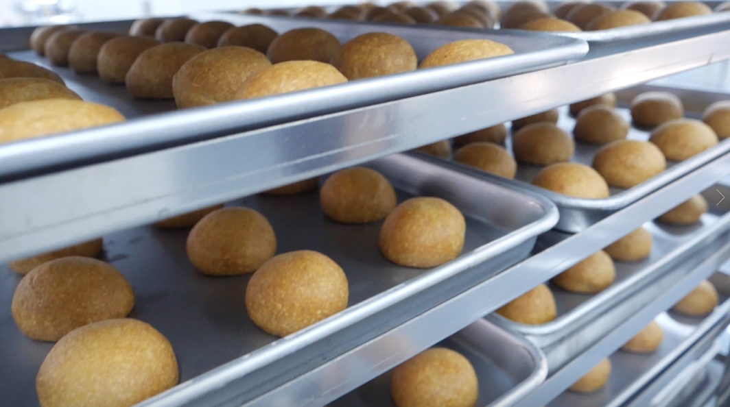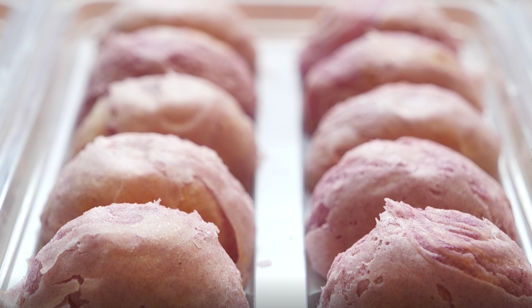 200度高温,15分钟烘烤,一个个奶黄色的“月饼团子”即将完成一次“美味变身”。
