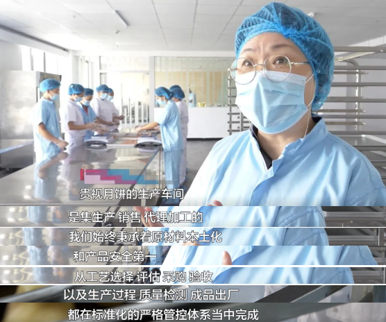 贵视月饼生产负责人 葛擎:贵视月饼的生产车间是集生产、销售、代理加工的食品生产企业,我们始终秉承着原材料本土化和产品安全的理念。第一,我们有一套完整的质量管理体系,从工艺选择、评估、采购、验收,以及生产过程质量检测、成品出厂都在标准化的严格管控体系当中完成。我们一直秉承的都是传统手艺是手工制作,目的就是为了还原食品的本香。