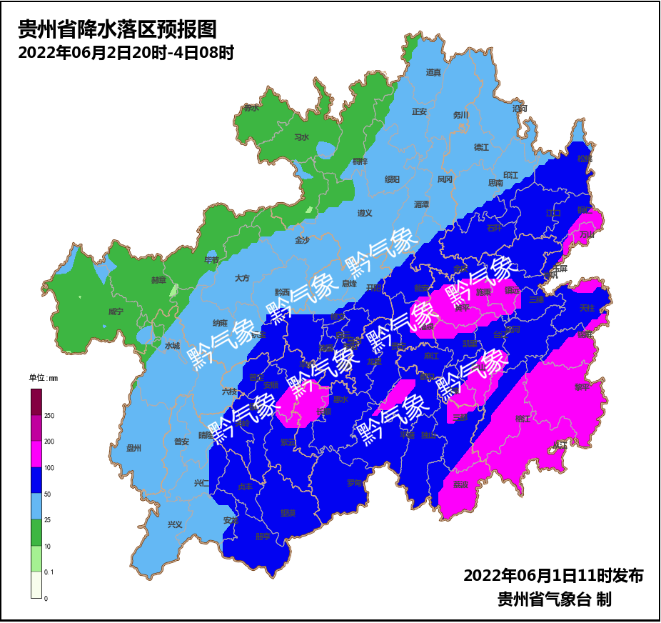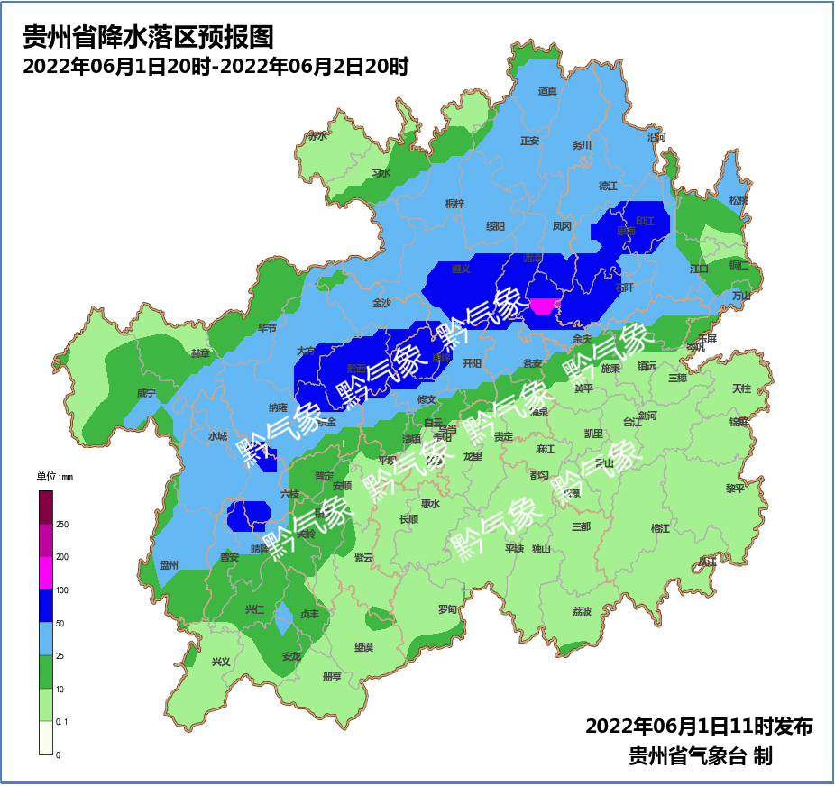 贵州省气象台6月1日发布持续强降雨天气过程暨“端午”节日天气预报:预计今天夜间至6月4日,我省自北向南将出现强降雨天气,6月5日降水减弱,各地逐步转为多云天气。