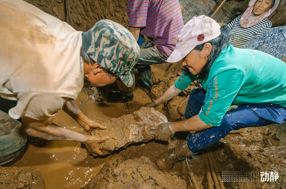 村民用双手搬开泥堆里的每一块石头,直至完工。