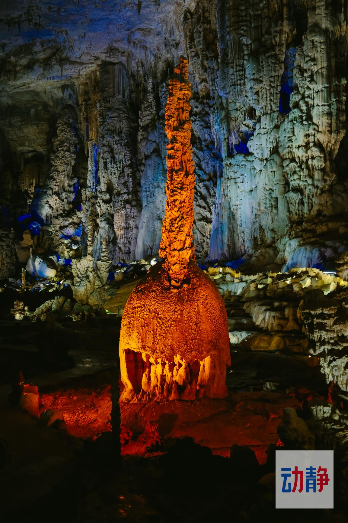 而在享有"中国溶洞之王"盛名的织金洞景区是一个年龄超2亿岁,但仍在生长的“年轻”洞穴。人们常说滴水穿石,但滴水也能生石。正是有了这些不断下落的小水滴带来的矿物质,洞中平均年龄50万年的钟乳石,有不少还在继续生长。