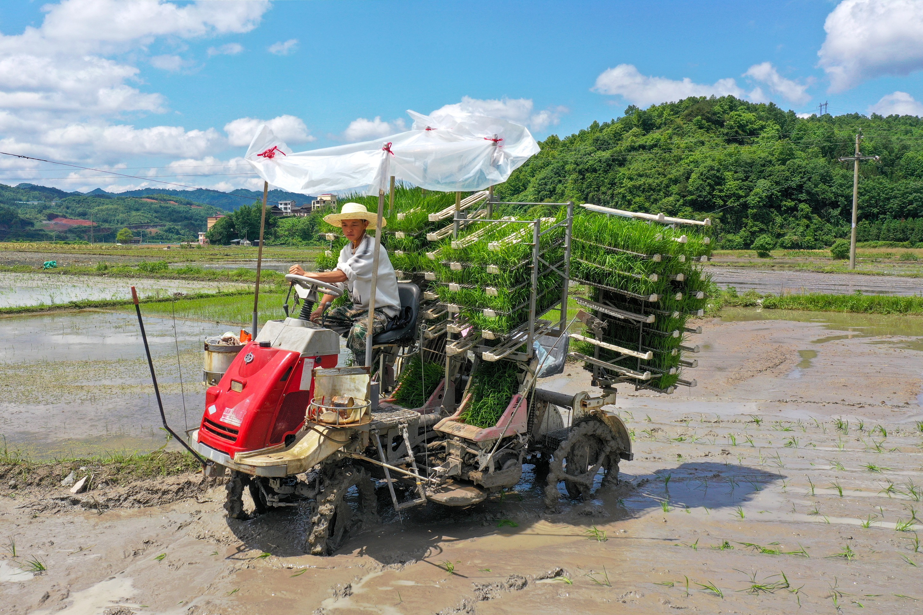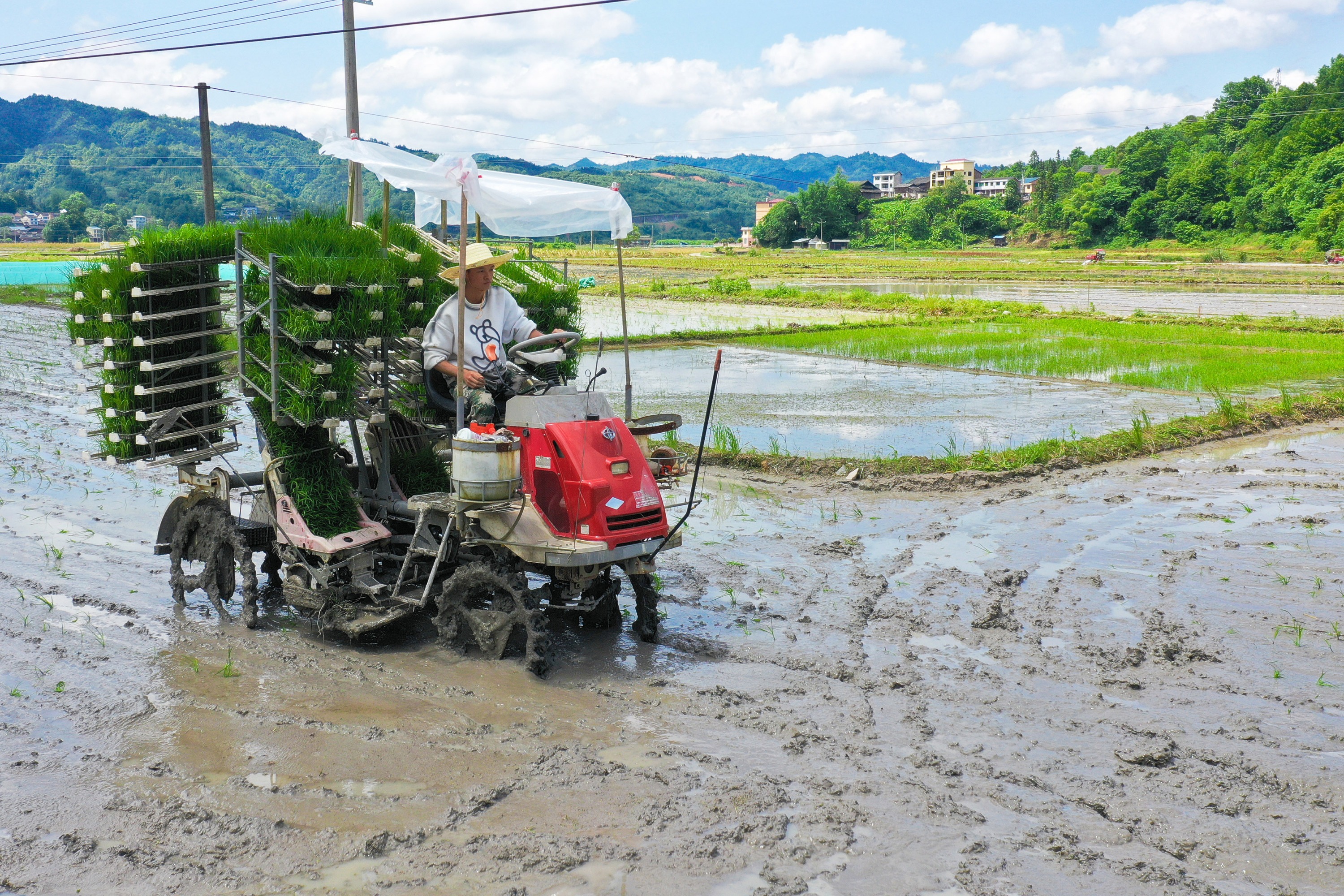 立夏小满正栽秧。连日来,剑河县南明镇抢抓农时,依托农业机械化加快水稻栽插进程,助力水稻生产绿色高质量发展。