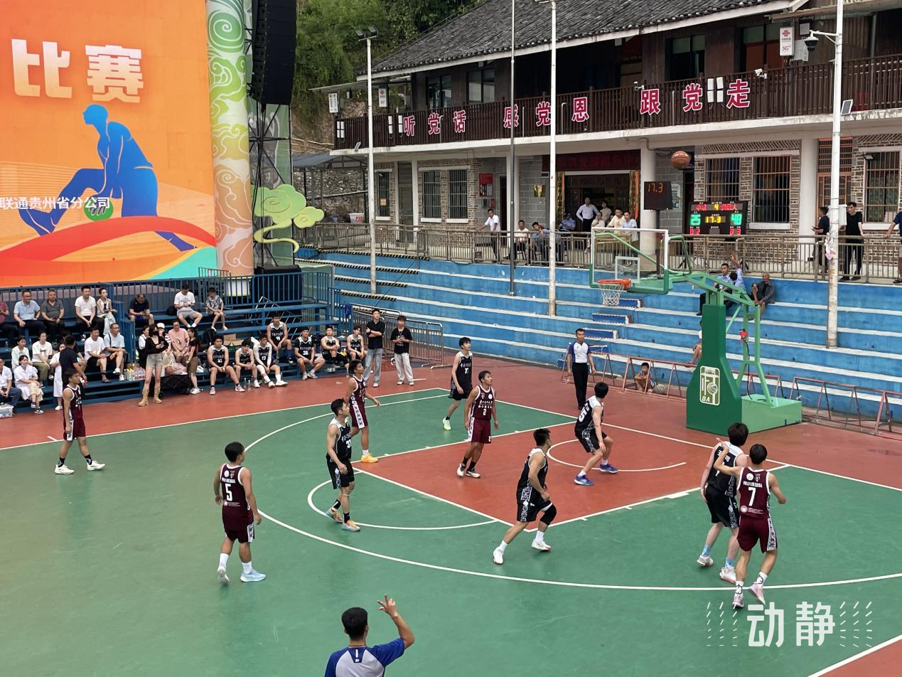 7月27日,贵州台盘“村BA”的球场上正在进行一场友谊赛,贵州医科大学运动与健康学院篮球队和中央戏剧学院篮球队激战正酣。