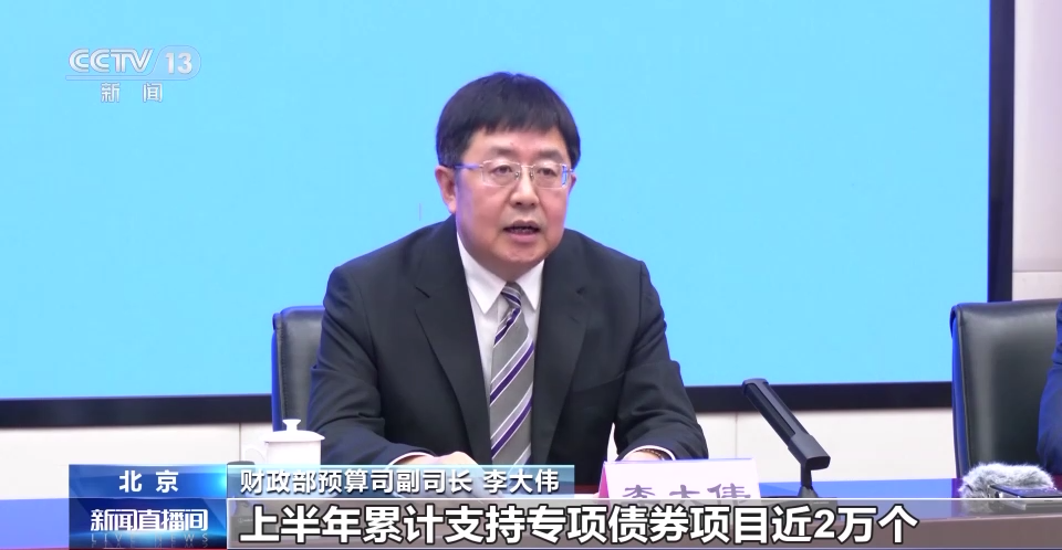 财政部预算司副司长 李大伟:上半年累计支持专项债券项目近2万个,优先支持国家重大战略、重大项目建设。其中,用于市政建设和产业园区基础设施7275亿元、交通基础设施4211亿元、社会事业3588亿元、保障性安居工程3267亿元,对带动扩大有效投资、保持经济平稳运行发挥了重要作用。