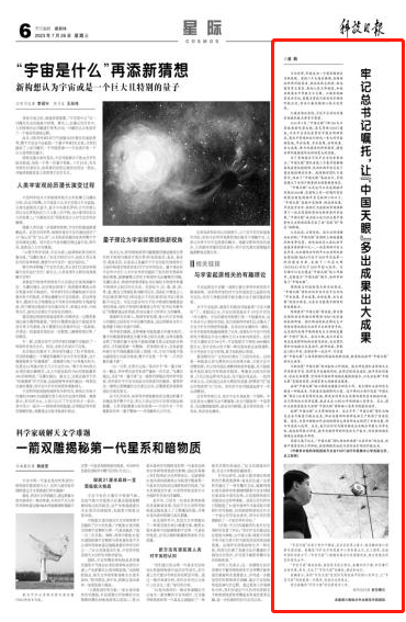 2016年9月,“中国天眼”(即500米口径球面射电望远镜,英文简称FAST)建成,习近平总书记在贺信中提出明确要求,高水平管理和运行好这一重大科学基础设施,早出成果、多出成果,出好成果、出大成果,努力为建设创新型国家、建设世界科技强国作出新的更大的贡献。